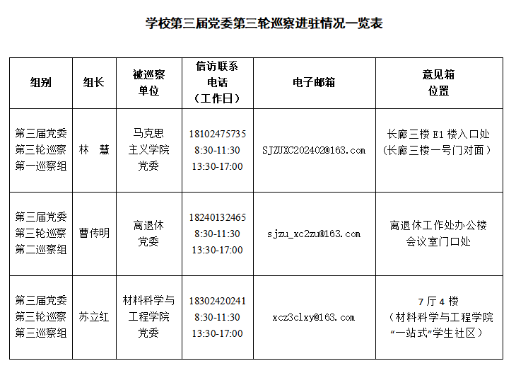 本轮巡察时间为2个半月,期间设立信访联系电话、意见箱和电子邮箱,主要受理反映被巡察单位领导班子及其成员、重要岗位领导干部的来信来电来访,重点是关于违反政治纪律、组织纪律、廉洁纪律、群众纪律、工作纪律和生活纪律等方面的举报和反映。